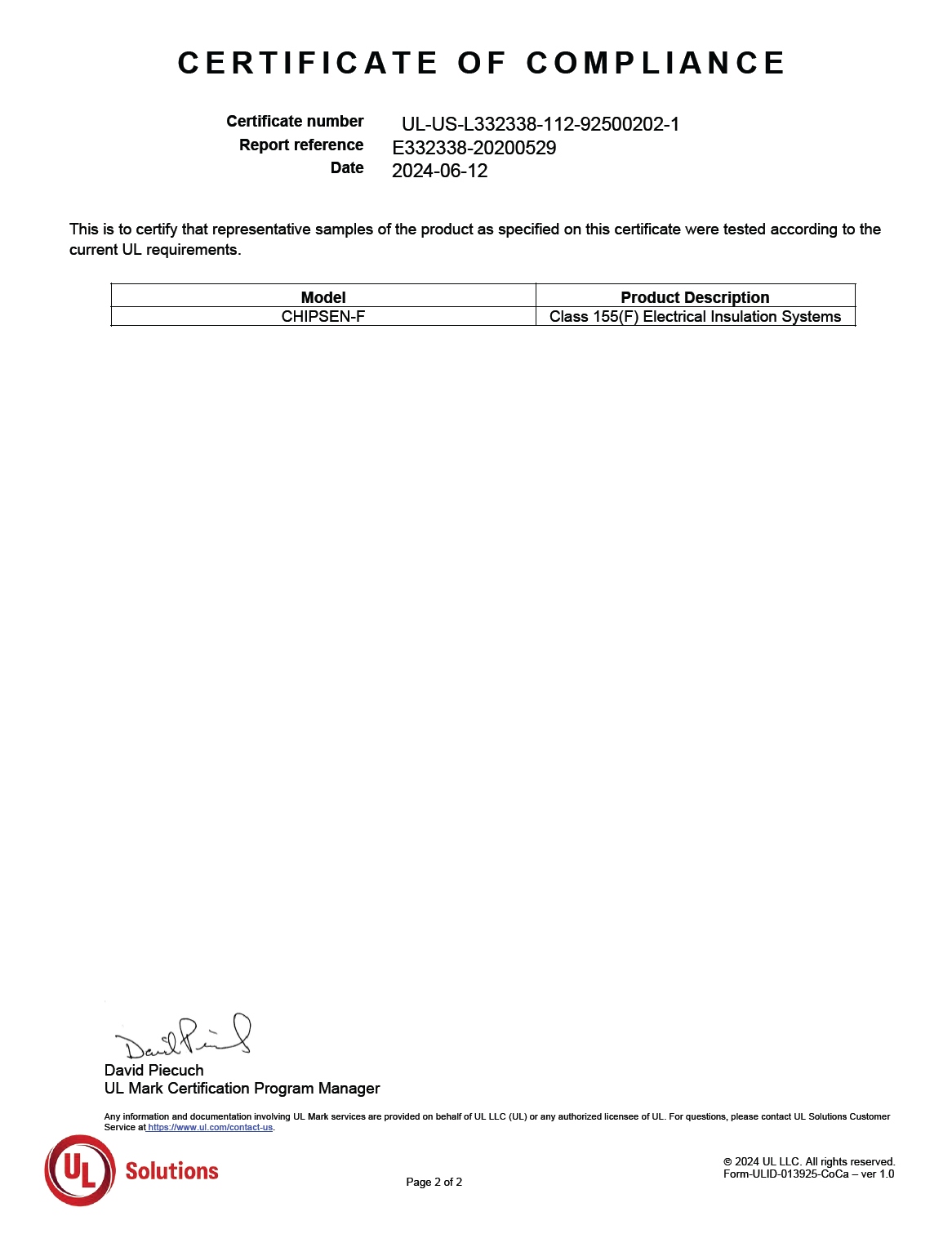 UL-Class F 證書