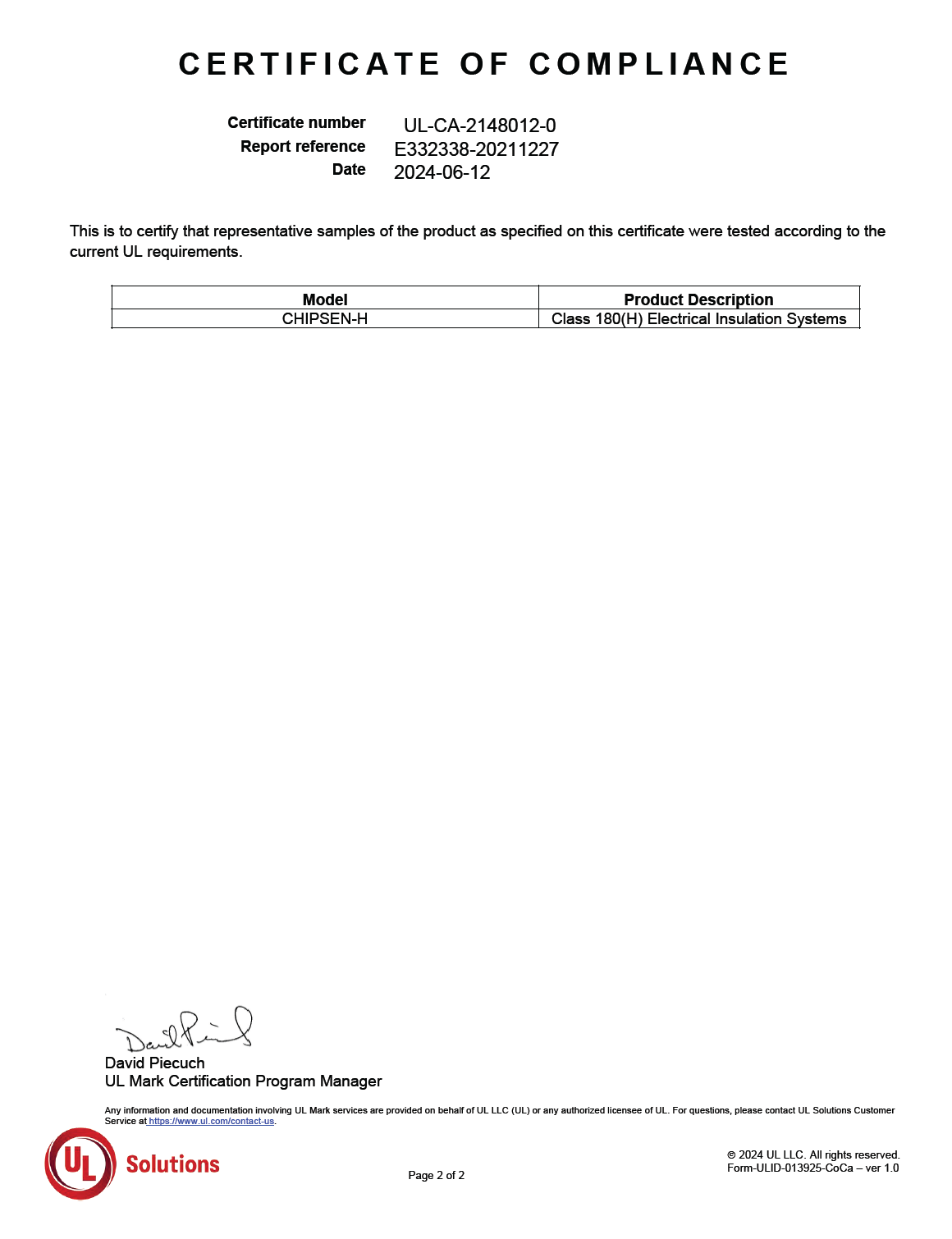 UL-Class H 證書